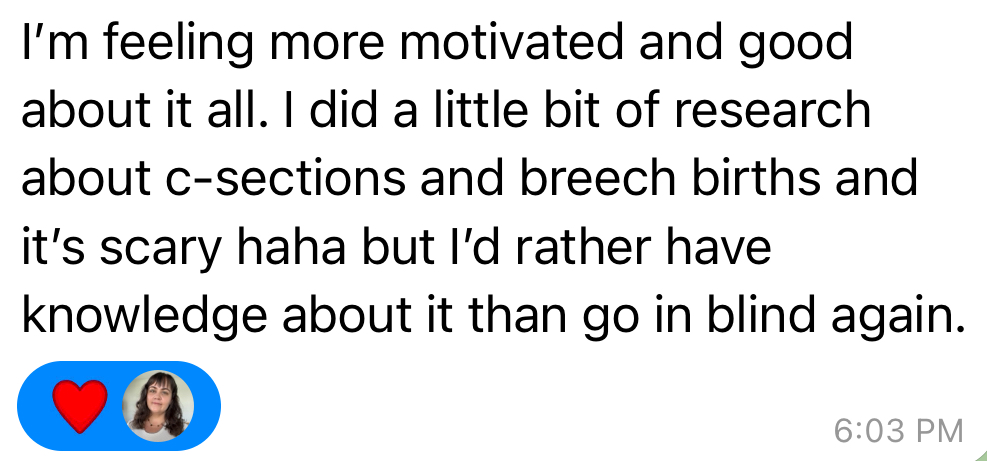Trusting your body and intuition again. It means speaking up confidently when decisions need to be made because you've already walked through every possibility. It means coming out of your birth thinking "I DID that. I navigated that like a boss", regardless of how it unfolded.