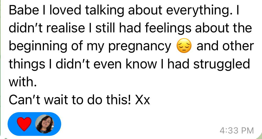 I can't control what happens during birth, but I CAN transform how you show up to it. My clients consistently report feeling calm, prepared, and in control, regardless of how their birth unfolds. It's about your response, not the circumstances.